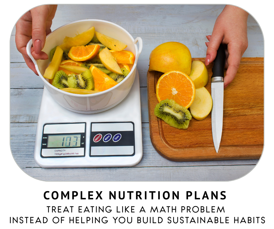 The focus of this program is to get you started with simple easy to follow tasks and then help you build upon them by giving you the resources and information you need to be successful. As a coach, it’s not my job to hand-feed you new, impossible rules to follow — it’s my job to know the research, know the science, and have the tools available for you so you can be guided towards what works for you.
